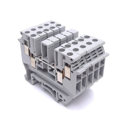 Złączka dwupoziomowa, nom. napięcie: 500 V, prąd znamionowy: 32 A, sposób podłączenia: złącze śrubowe, 1. i 2. poziom, przekrój znamionowy: 4 mm2, przekrój: 0,2 mm2- 4 mm2, rodzaj montażu: NS 35/7,5, NS 35/15, NS 32, kolor: szary