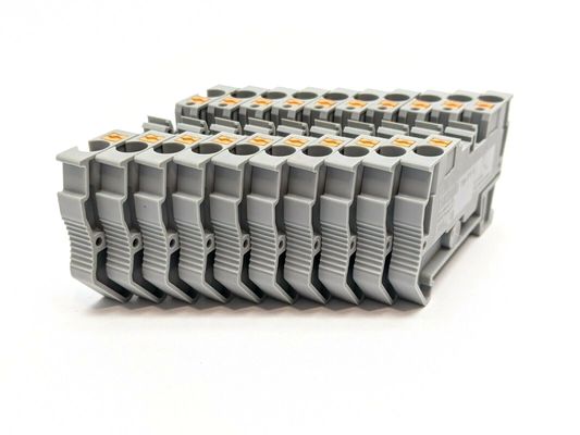 Blok końcowy węzłu wejściowego, napięcie nominalne: 800 V, prąd nominalny: 32 A, liczba połączeń: 2, metoda połączenia: połączenie wciskowe, przekrój poprzeczny znamionowy: 4 mm2, przekrój poprzeczny: 0,2 mm2- 6 mm2, typ montażu: NS 35/7,5, NS 35/15, kolor: szary